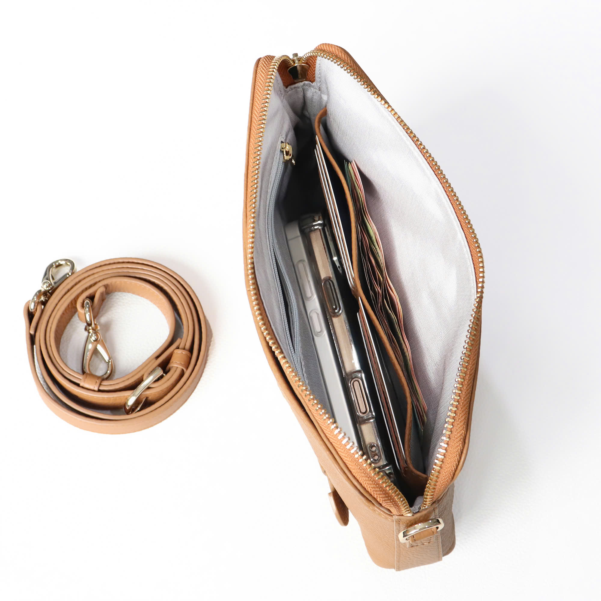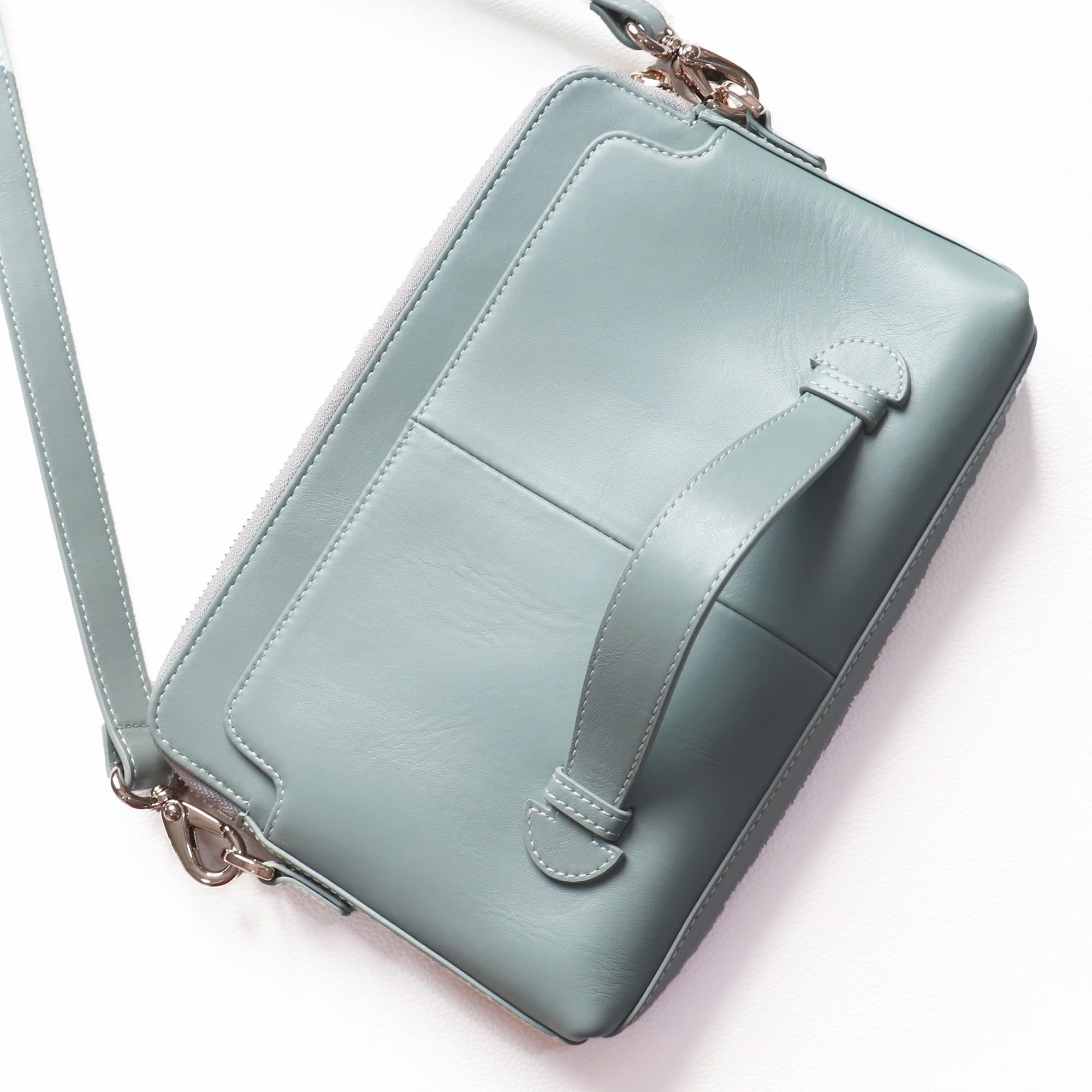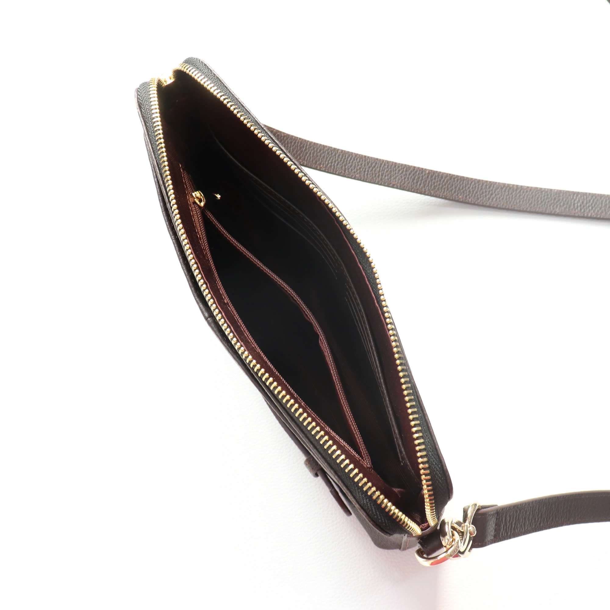 - Túi đi kèm dây da tháo rời tiện lợi, dễ dàng điều chỉnh độ dài đeo chéo, đeo vai. Mặt sau có thiết kế quai luồn tay cực kỳ chắc chắn và sang trọng