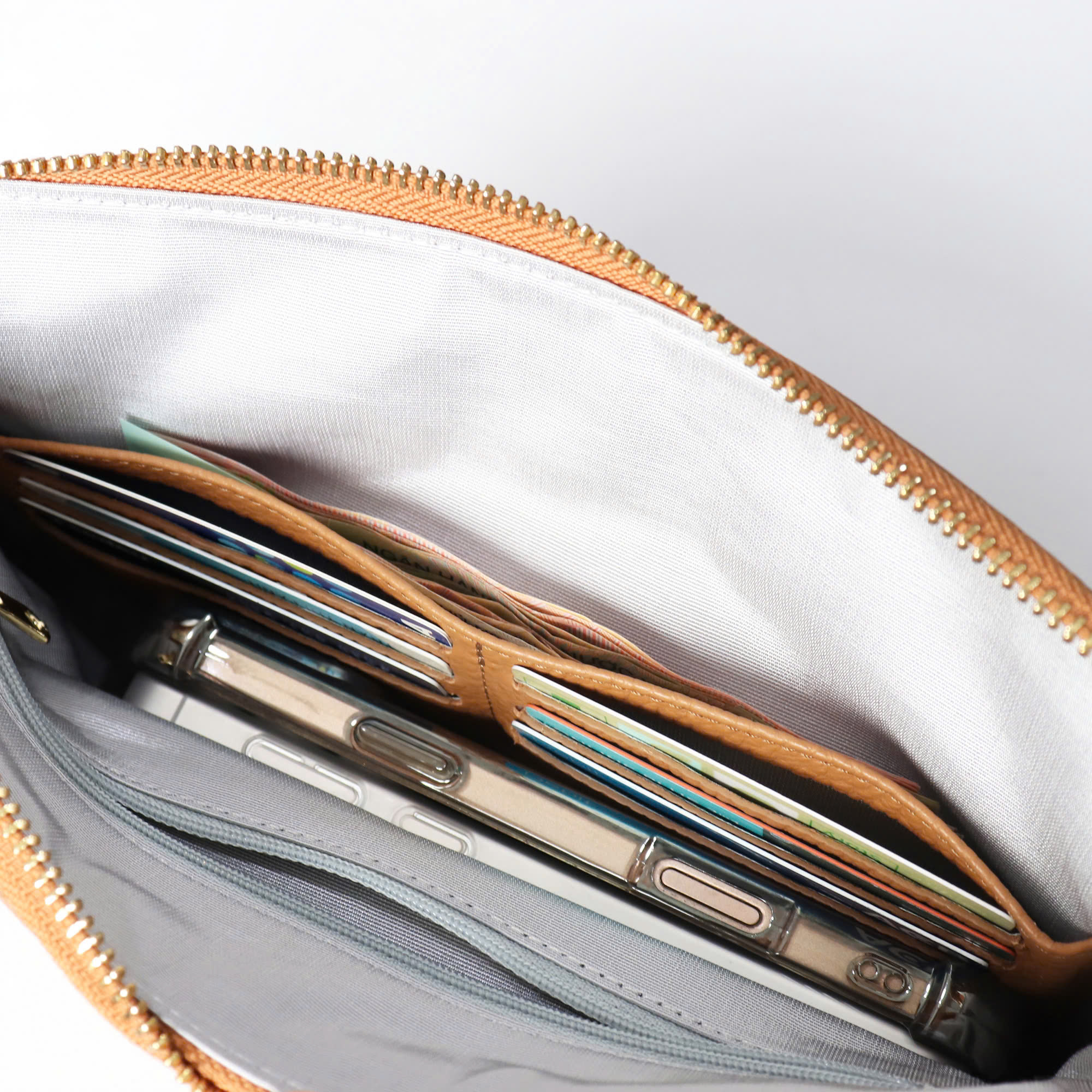 - Ngăn túi: 1 ngăn lớn đựng tiền, điện thoại + 1 ngăn khóa kéo + 6 khe thẻ + 1 ngăn phụ. 2 ngăn lớn bên ngoài có nút bấm